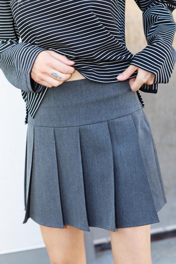 Clueless Skirt is a pleated mini skirt with an a-line silhouette. Whether styled with an oversized sweater, a blazer or a striped shirt, the skirt screams effortless elegance. It’s made from 63% polyester, 33% viskose and 4% elastane.The model is 176 cm tall and wears a size 36.