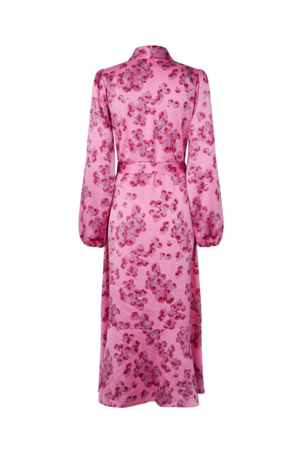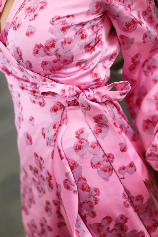 NOTE: Lara dress pale peony and pale peony blue is a pre-order item for delivery later.Expected delivery time: In the picture you will find an estimated time of arrival – this is when we expect to have the item in stock. If other goods are ordered together with the ordered goods, they will be sent separately.Right of return: We charge the full amount when your order is shipped. Your 14-day right of return begins from the moment you receive the physical goods.Elegant long wrap dress with a cool print and ruffle details at the hem. The wrap design creates a flattering silhouette.The dress is true to size, so we recommend choosing your usual size.• Wrap dress• Printed design• Long sleevesThe model is 171 cm tall and wears a size 36.Material: Made from 100% recycled polyester.