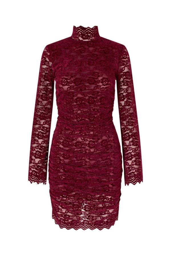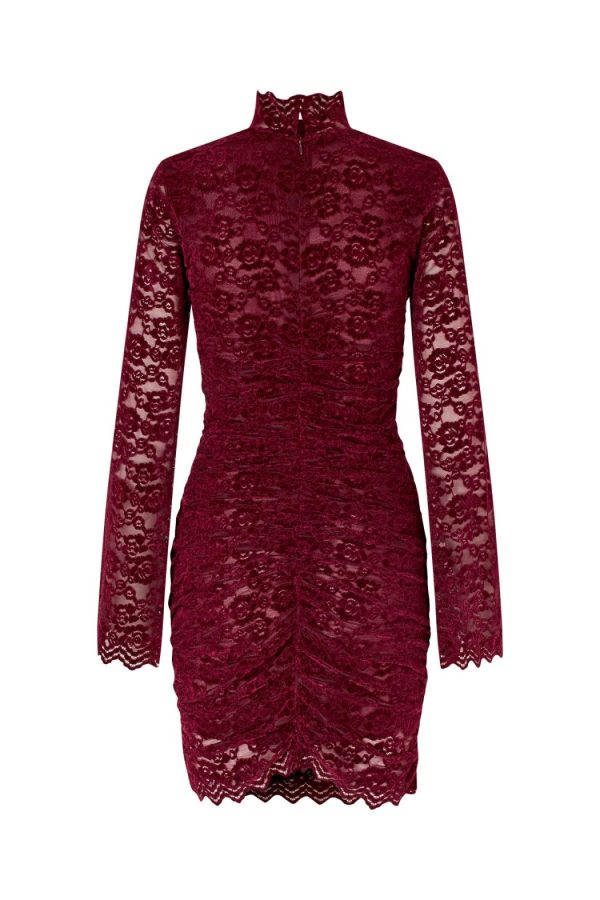 This lace dress combines elegance with a flattering fit. The stretchy fabric and gatherings at the side seam and center back creates a draped effect that accentuates the figure. The dress also features a hidden zipper at the center back. Made from 50% polyester, 42% nylon and 9% elastane.The model is 176 cm tall and wears a size 36